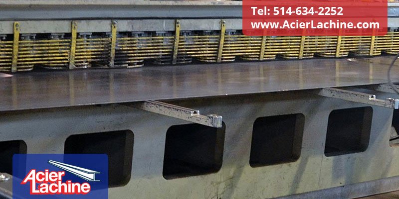 Cisaille à guillotine (eng: Guillotine Shearing): Coupe de tôles ou de plaques de métal en ligne droite à l’aide d’une cisaille à guillotine.