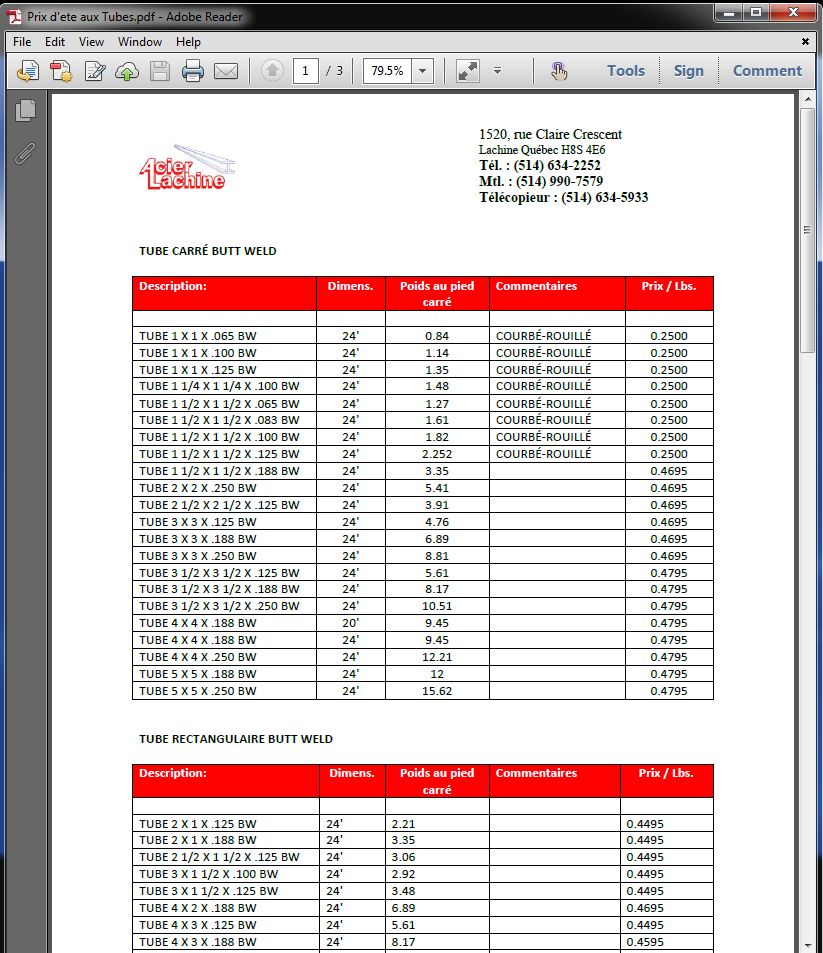 Information: Tous les prix et les quantités sont sujets aux changements sans préavis. Nous vous demandons de vérifier auprès de nos représentants afin de confirmer les prix indiqués.